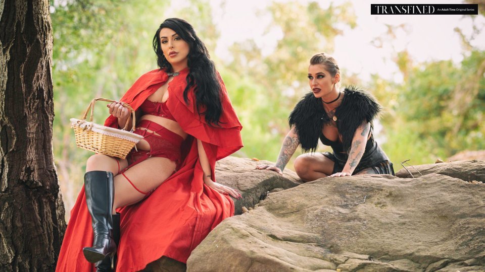 Лесби в чёрном страпонит девушку в красном