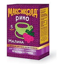 Порошок для приготовления раствора для приема внутрь (лимонный, апельсиновый, малиновый) 15 г . По 15,0 г препарата в термосвариваемом пакете из материала комбинированного . По 5 или 10 пакетов с инструкцией по применению МАКСИКОЛД ® РИНО помещают в пачку из картона . Условия хранения Хранить при температуре не выше 25 °С .
