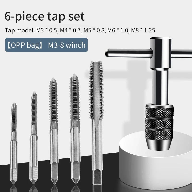 Portable 6pcs T-type Wrench Drill Set Hand Tapping Tools Machine Screw Thread Tap Twist Bit M3/M4/M5/M6/M8 Tap Set DIY Tool - Купить с бесплатной доставкой