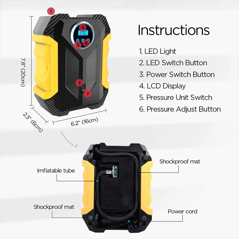 eupcUInyQHere you can buy Portable Automobile Air Compressor Digital Tire Inflation Pump LED Lamp Tire Compression Pump Compressor For Car Motorcycle with free delivery to your post office.