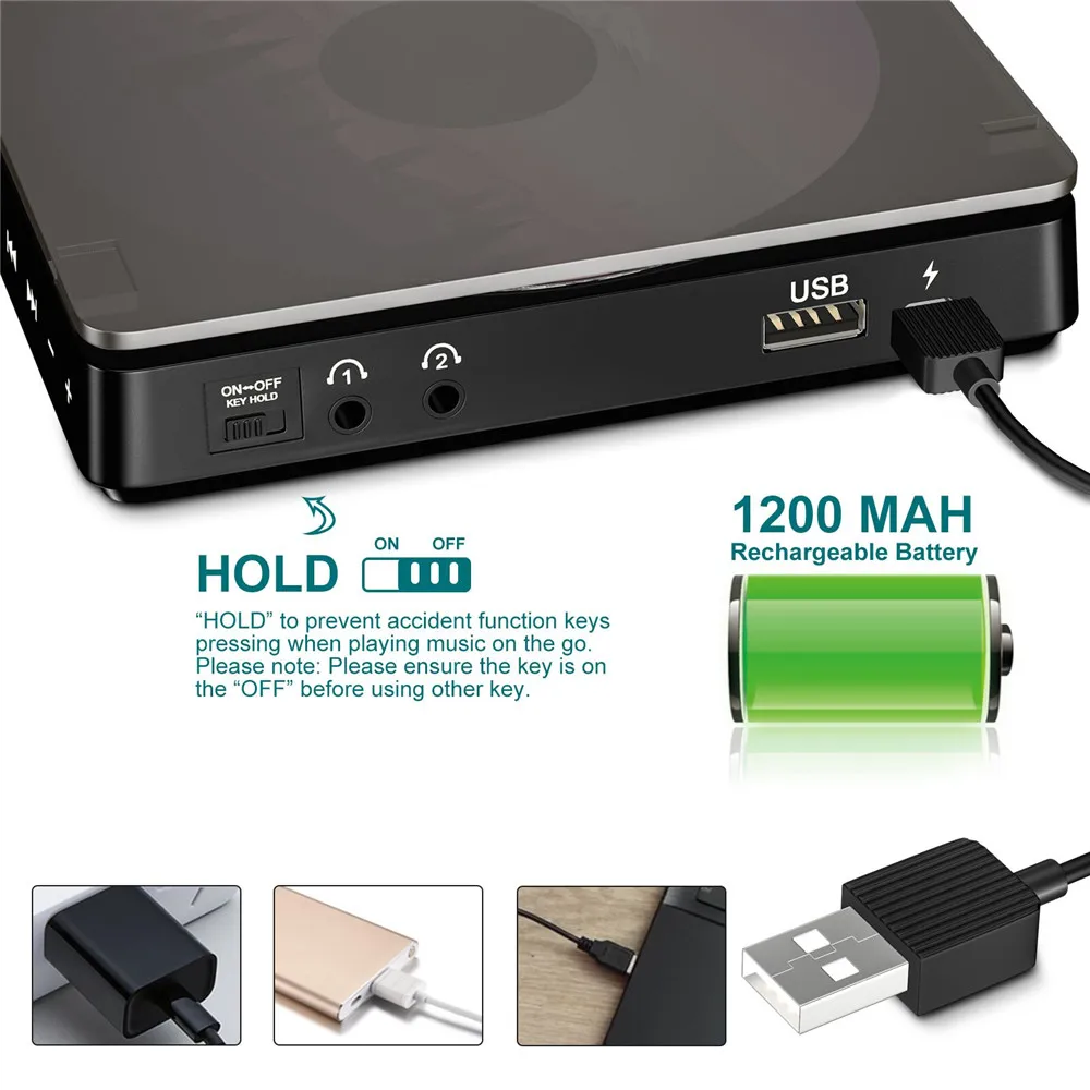 UmqOaPEagHere you can buy Portable CD Player Double Headphone Version Contact Button Reproductor CD Walkman Rechargeable Shockproof LCD Display with free delivery to your post office.