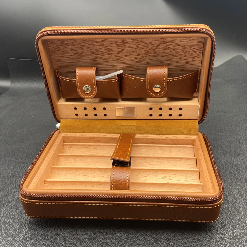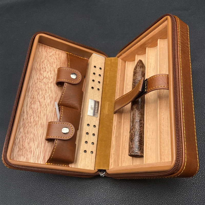 Portable Cedar Wood Cigar Humidor Box Travel Leather Cigar Case Storage 4 Cigars Box Humidor Humidifier Cuba Sigar Accessories - Купить с бесплатной доставкой