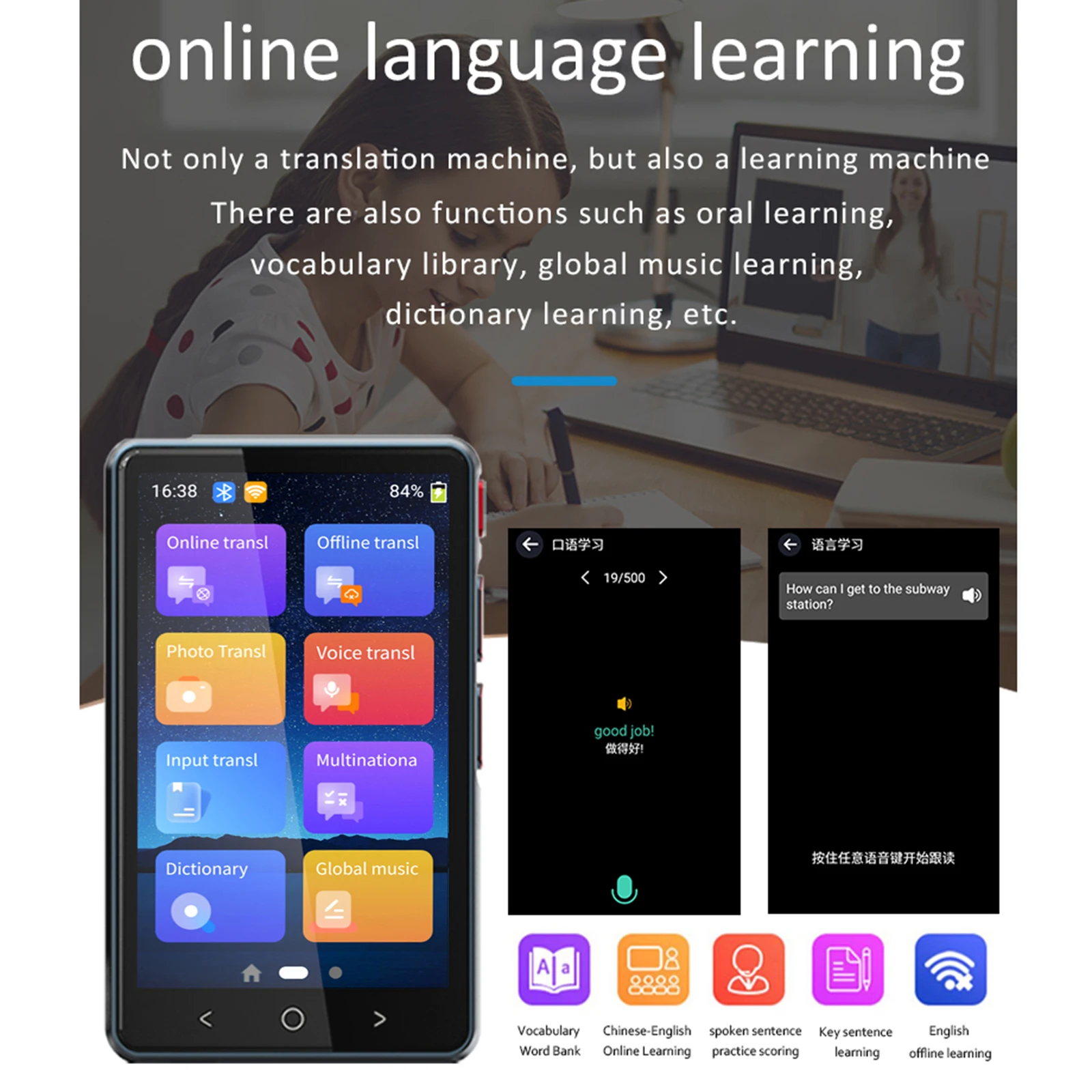 NchzgFRPmHere you can buy Portable Intelligent Voice Translator Support 134 Languages Photo Translation Conference Travel Learning Translation Device with free delivery to your post office.
