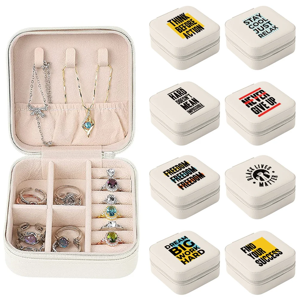 Portable Jewelry Box Jewelry Organizer Display Travel Jewelry Case Storage Boxes Word Print Leather Zipper Storage Packaging - Купить с бесплатной доставкой