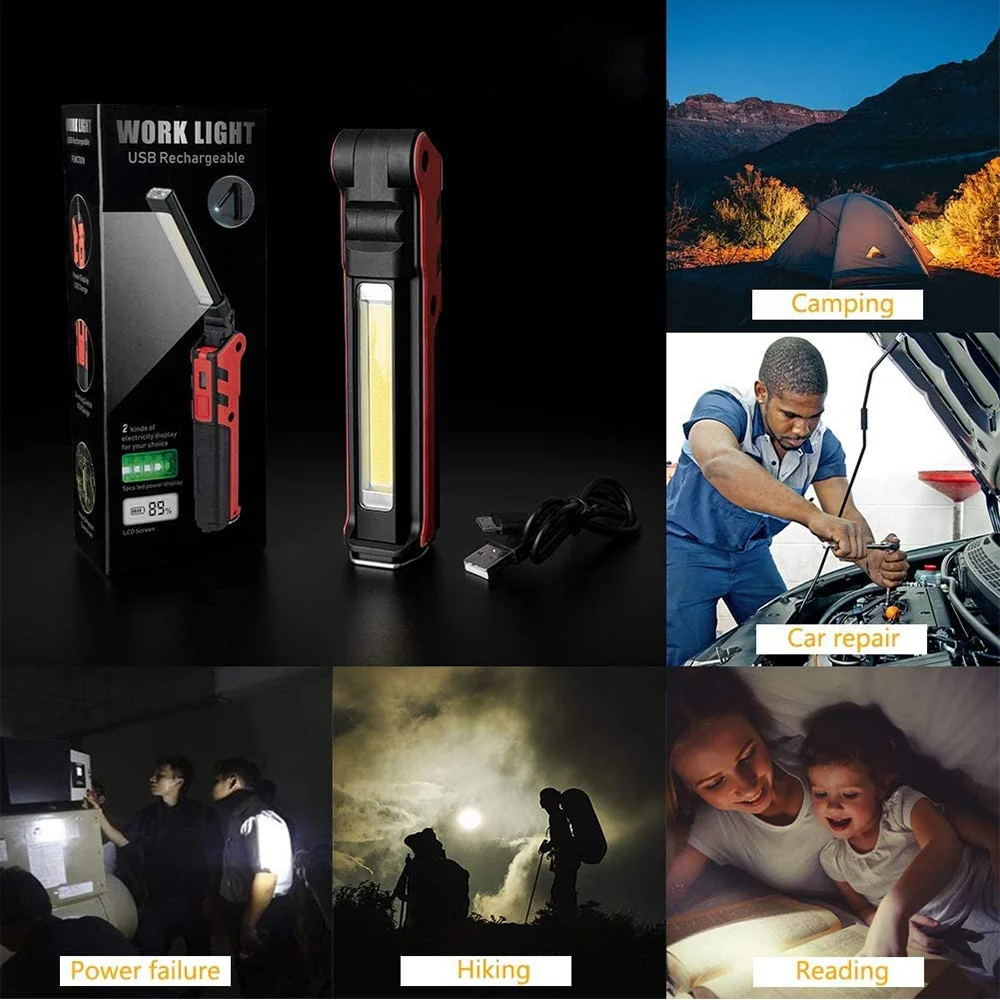 QcqYjqGsrhHere you can buy Portable LED Work Light USB Rechargeable Folding Flashlight Magnet Hook Hand Lamp 270° Rotate Base Torch Outdoor Camping Repair with free delivery to your post office.