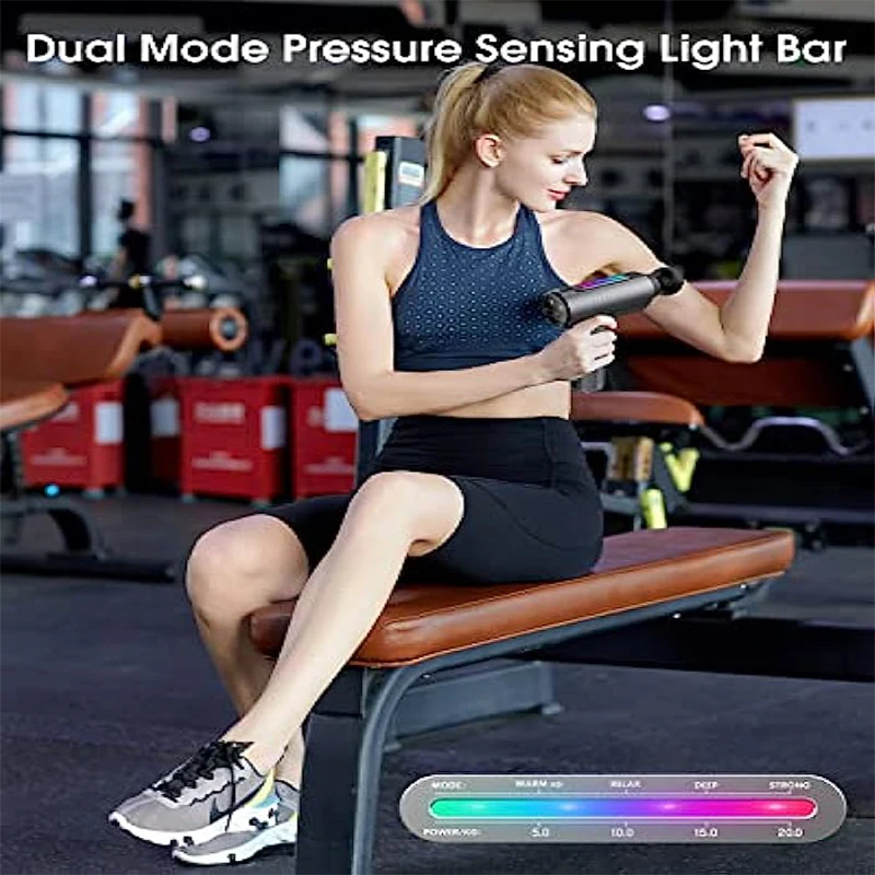 UGEOqDrLHHere you can buy Portable Massage Gun Vibrator Deep Tissue With Pressure Sensitive Light Bar Handheld Body Massager For Back And Neck Pain Relief with free delivery to your post office.
