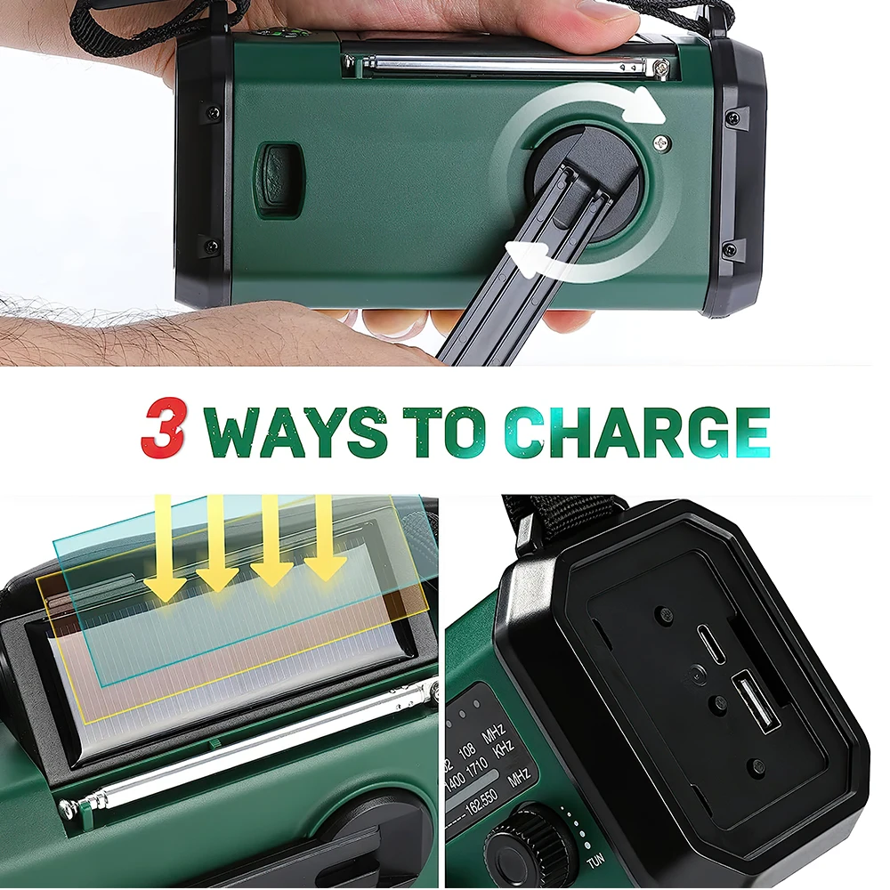 "Portable NOAA/AM/FM Weather Radio 10000mAh Hand Crank Solar Power USB Charging LED Flashlight Compass Reading Lamp Power Bank" * Buy Now With Free Shipping Just For $44