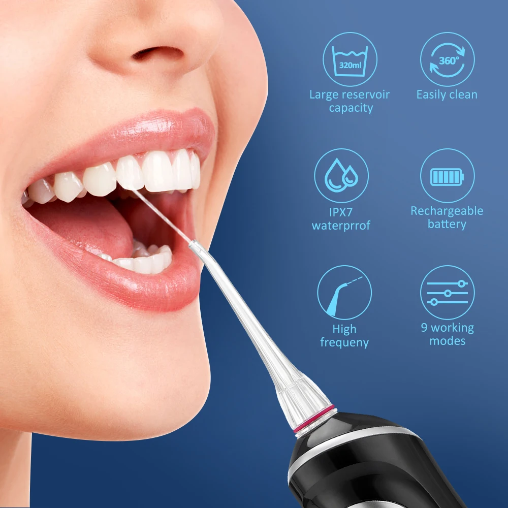 OaiqAoDLLooked for Portable Oral Irrigator Water Flosser USB Rechargeable Dental Water Jet 320ML Water Tank IPX7 Waterproof 5 Nozzles Teeth Cleaner for a long time, but could not find it? Bring to your attention Portable Oral Irrigator Water Flosser USB Rechargeable Dental Water Jet 320ML Water Tank IPX7 Waterproof 5 Nozzles Teeth Cleaner with the best price!