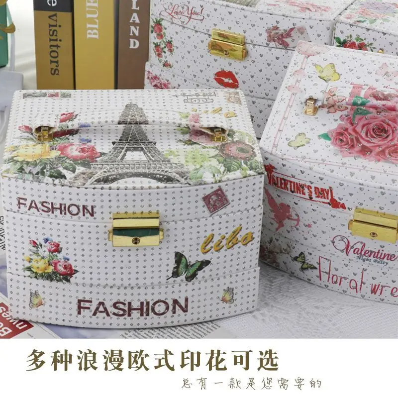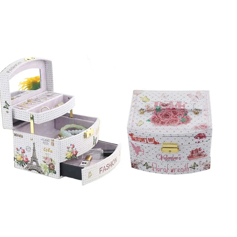 QNqnoBukHere you can buy Portable Printed Jewelry Box 3 Layer Leather Drawer Style Jewelry Case Travel Large Capacity Lock Jewelry Box with free delivery to your post office.