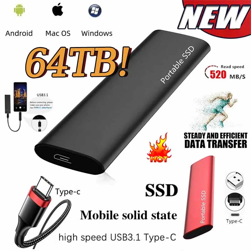 «Portable SSD 64TB Hard Drive 1TB/2TB/4TB/16TB 100% Original External SSD Hard Drive Type C USB3.1 Hard Disk USB Flash Drive» по лучшей цене на рынке! Всего за 7$ (665рублей)