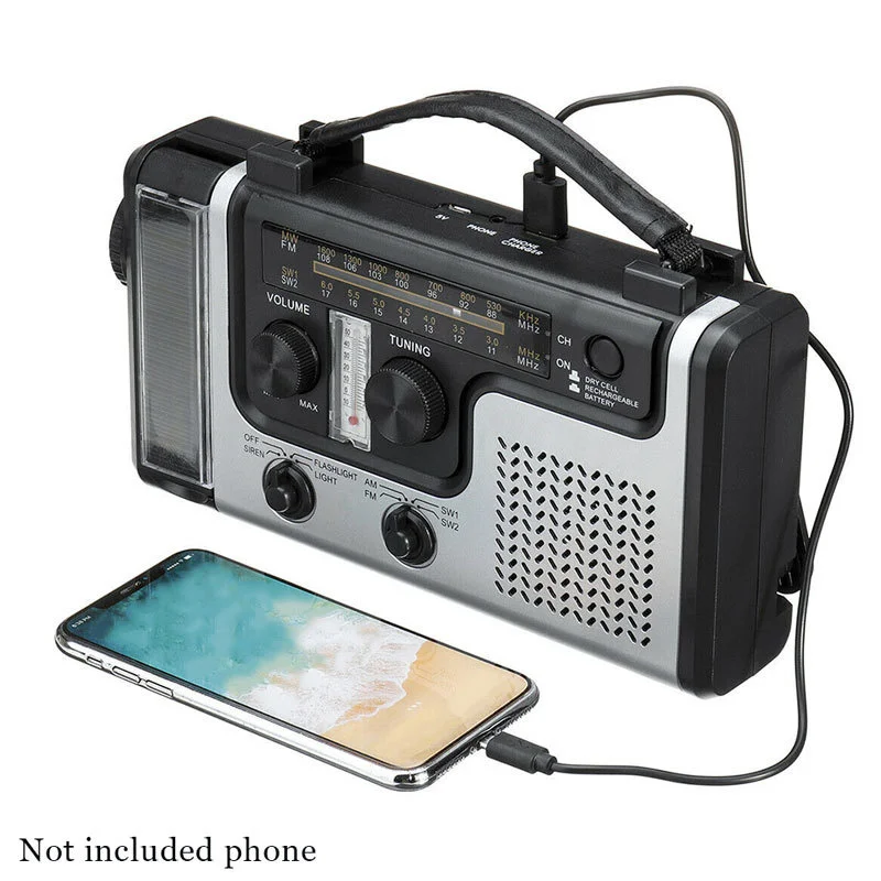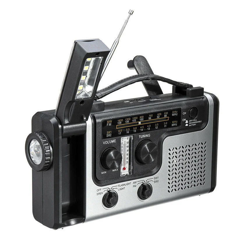 MBCRbVogHere you can buy Portable Solar Powered Hand Crank Radio FMAM SW1 SW2 Multi-band Emergency Radio mini LED Flashlight USB Phone Charger Power Bank with free delivery to your post office.