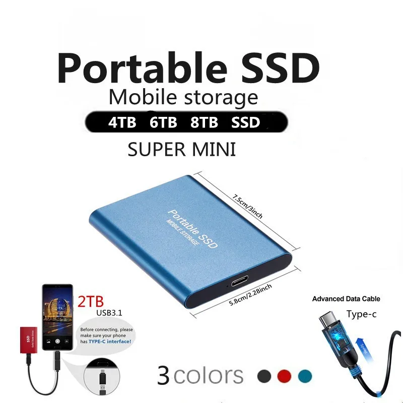 Exclusive 8TB SuperSpeed External SSD - Portable and high-capacity mobile SSD for laptops and desktops . $69 .98 . 14703 sold . $139 .96 50% Off Save $69 .98 . Only left in stock people are viewing this right now . Get it between - Color . Black Silver Blue Red Capacity . 500G . . .