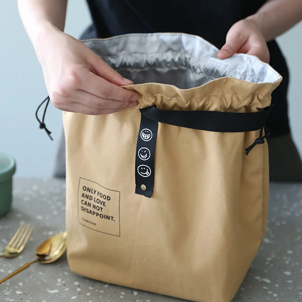 Portable Thermal Lunch Box Bag Food Storage Handbag Storage Tote Unisex Wide Opening Canvas Drawstring Lunch Box Storage Bag - Купить с бесплатной доставкой