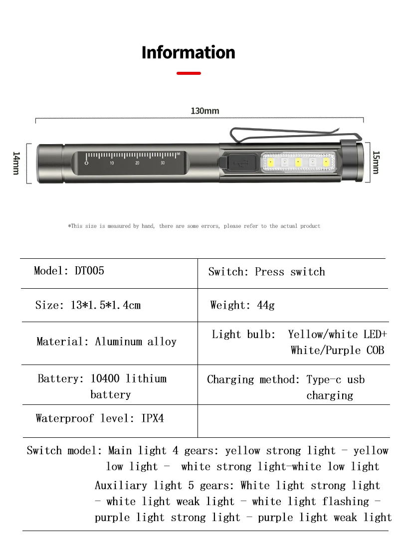 efTtIfMYuJЗдесь вы сможете купить Portable White+Yellow LED Flashlight USB Rechargeable Penlight Hand Torch with Side COB Waterproof Medical Detection Clip Lamp с бесплатной доставкой до вашего почтового отделения.