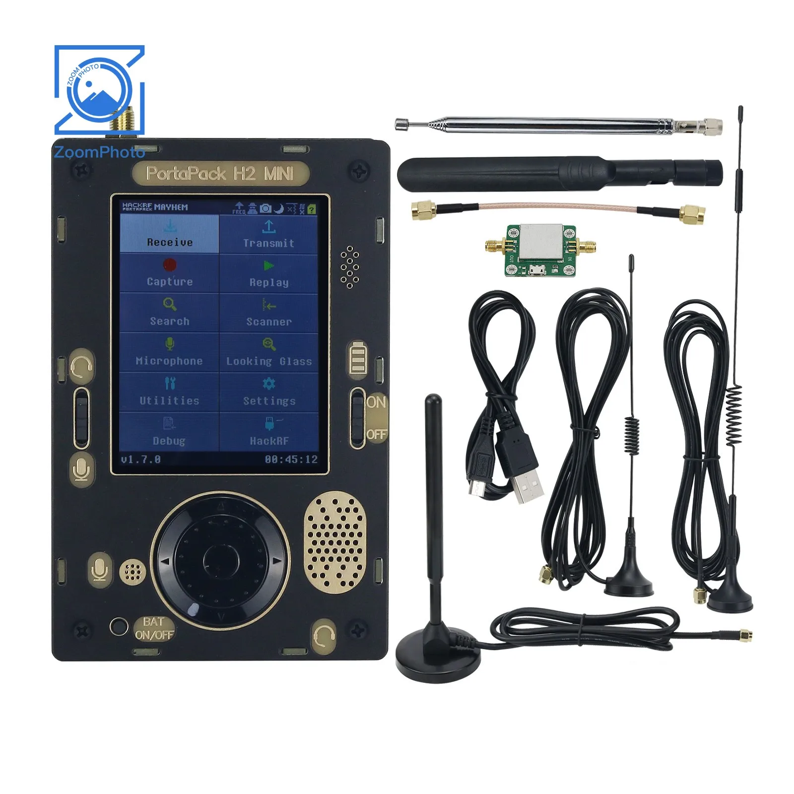 twFZBGHxeYHere you can buy Portapack H2 Mini + HackRF One R9 V1.7.0 SDR Radio Receiver with Five Antennas and Signal Amplifier with free delivery to your post office.