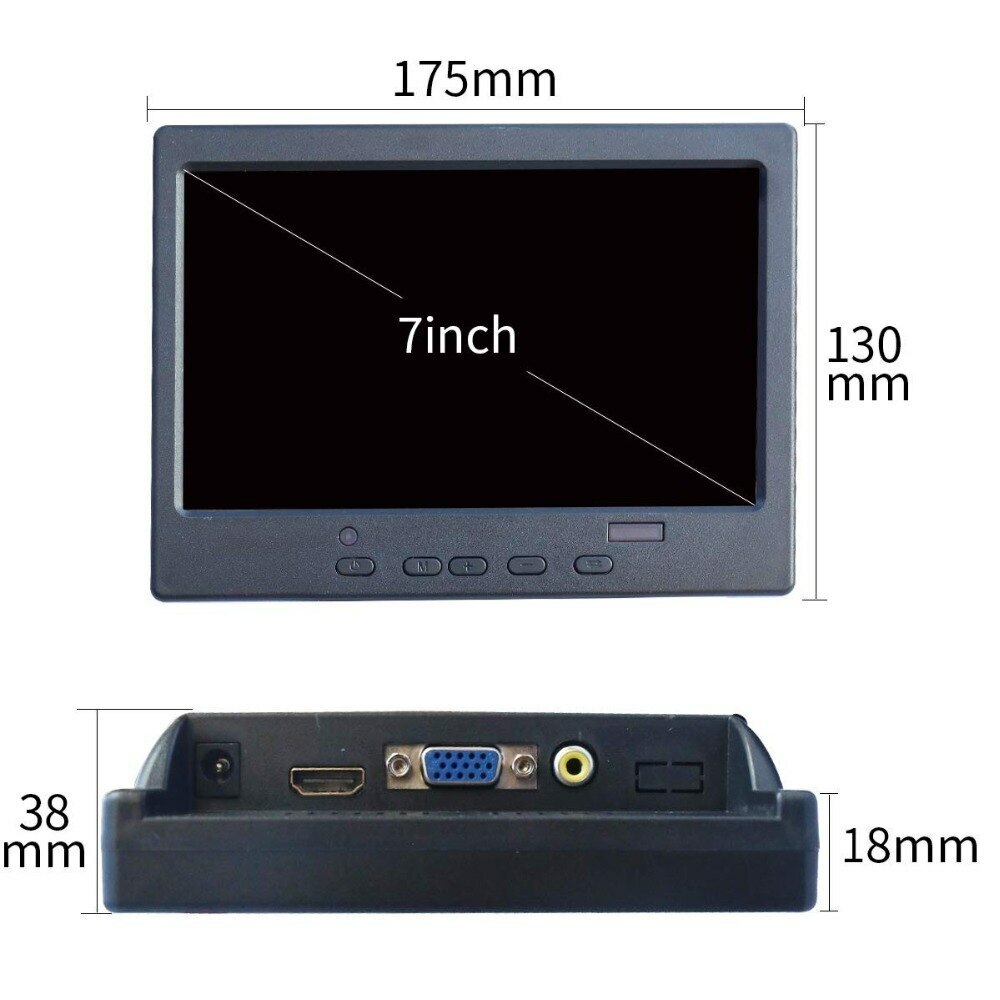 Портативный монитор 7″ | 800×480 (12V | HDMI/ VGA /AV) Портативный (175×130 мм) монитор диагональю 7″ с разрешением 800×480 пикс . предназначен для использования в автомобилях, системах видеонаблюдения, дронах, с миникомпьютерами Raspberry и многом другом .