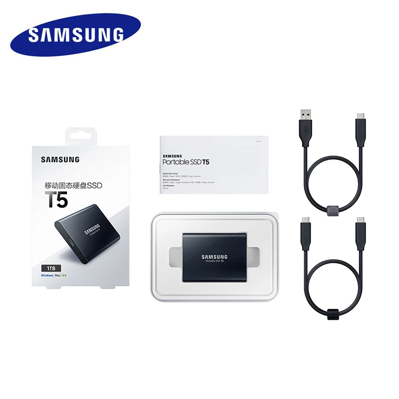 Продолжает подборку один из самых лучших портативных внешних SSD — это популярная модель Samsung ( SSD T5) с интерфейсом USB 3 .1 Gen 2 (Type-C) . В комплекте два кабеля: USB Type C -> Type A и USB Type C . Гарантированная скорость чтения 540 МБ/с .