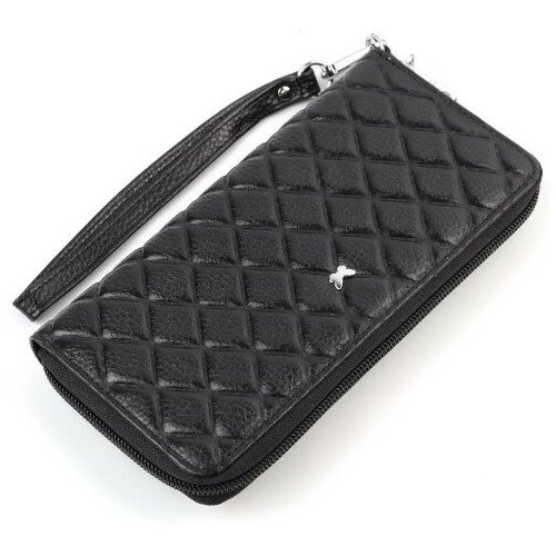 Se ferme avec une fermeture éclair. À l'intérieur, il y a trois compartiments et deux poches pour les billets, un compartiment pour la monnaie avec fermeture éclair et 15 poches pour les cartes en plastique. À l'extérieur : au verso se trouve une poche avec fermeture éclair. Comprend une dragonne en cuir amovible.