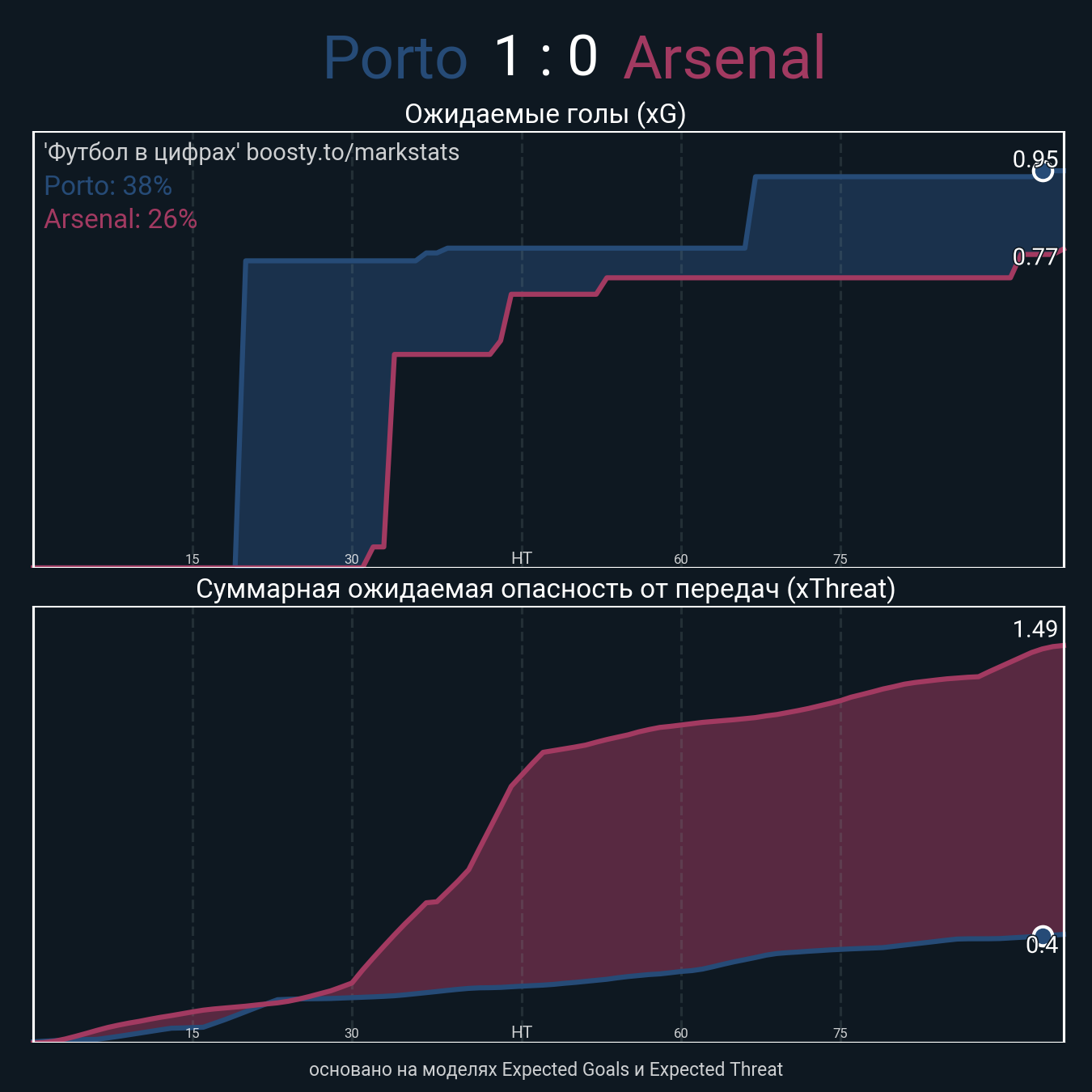 Ожидаемые голы (NPxG): 0.95 - 0.77