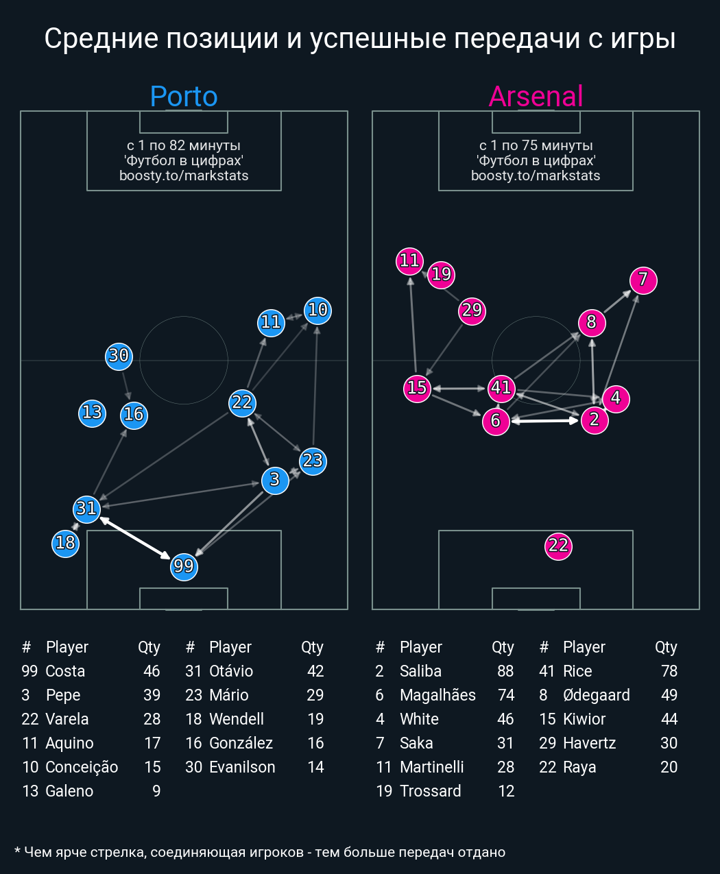 13 успешных передач из 18 попыток (2 под удар, 5 на трети соперника)