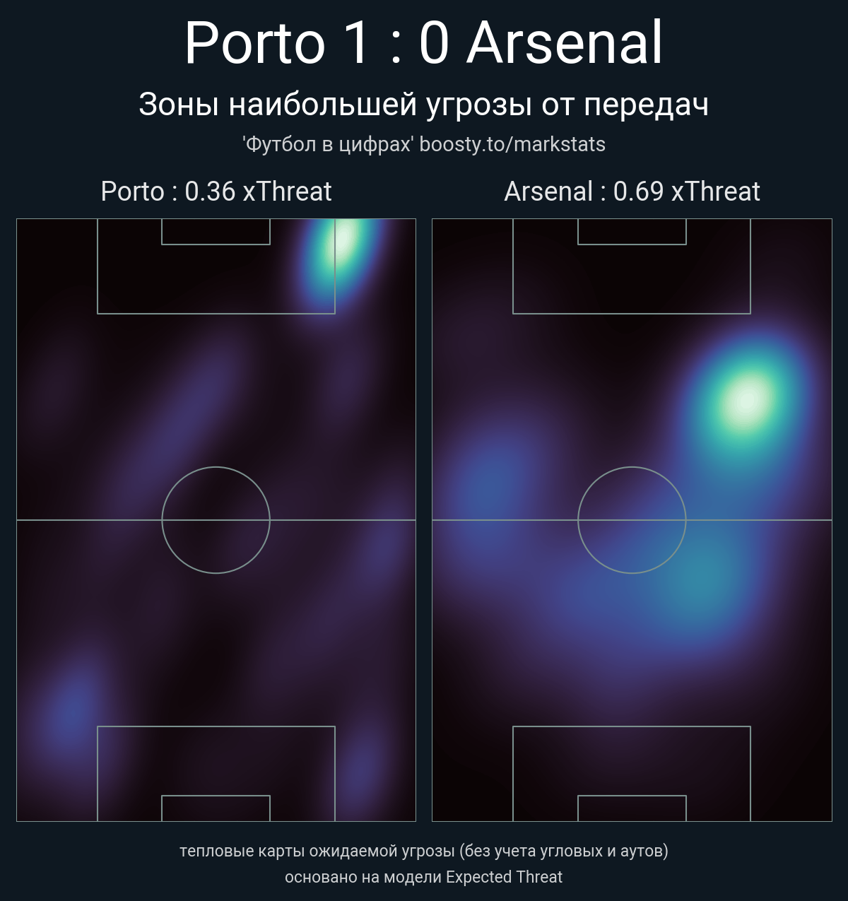 xThreat без учета угловых: 0.36 - 0.69