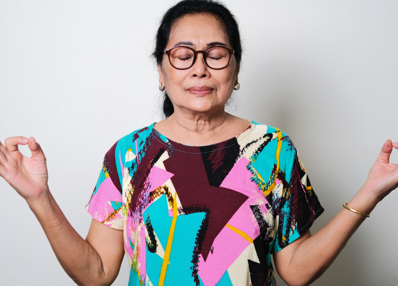 Portrait Old Asian Woman With Gestures Stock Photo