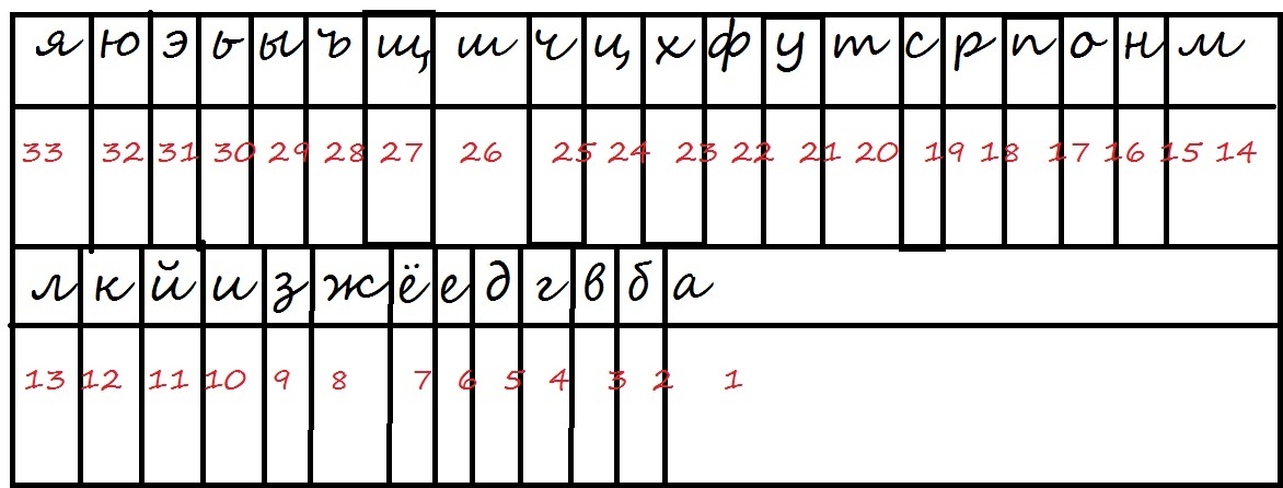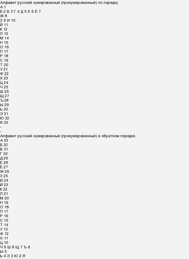 Порядковые номера букв в алфавите 0