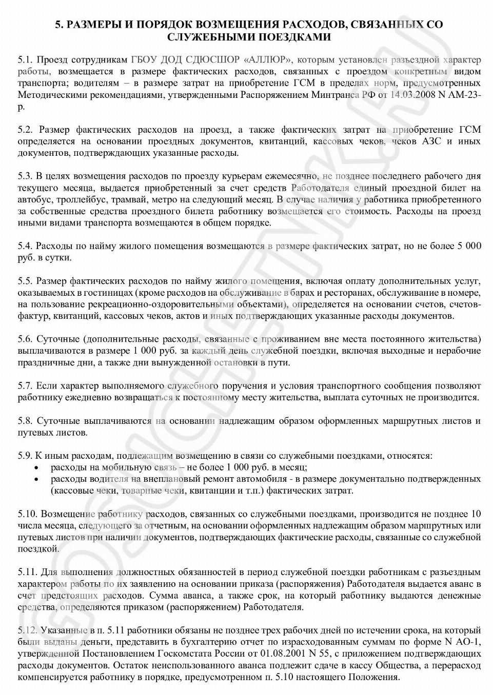 Порядок выплаты суточных