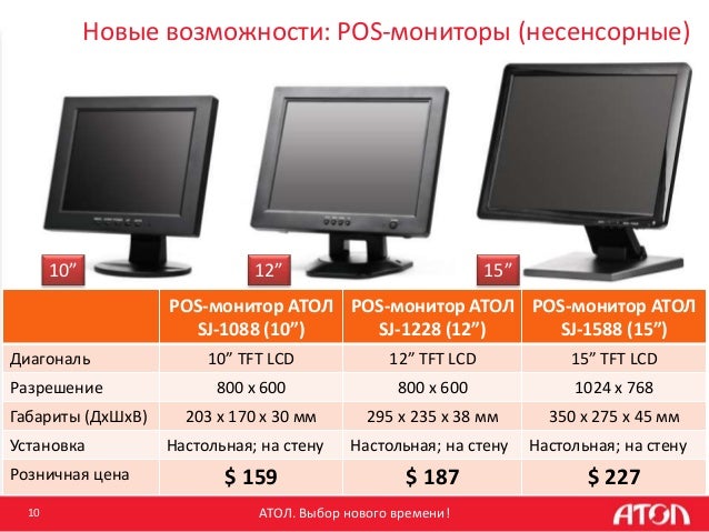 Купить pos -монитор 10 ″ Атол sj-1088 по цене 7 138 руб руб . с быстрой доставкой в Москве . Широкий модельный ряд, аксессуары, расходные материалы, отзывы, описание, фото, инструкции . Заказ товаров по телефону +7 495 177-04-47