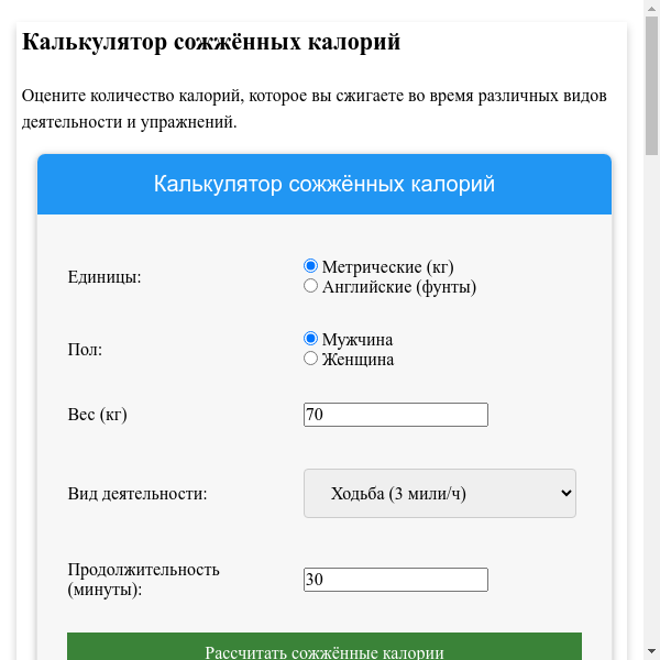 Посчитать сжигаемые калории