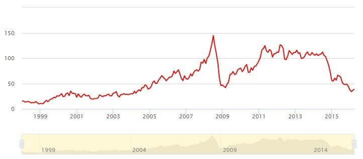 Чего ожидать после отмены карантина? Если коротко то ничего хорошего, особенно если ты живешь в России. В стране глубокий системный кризис, коронавирус лишь усилил его, связан он в первую очередь с падением цен нефть, а это треть доходов российского бюджета. Рост цен на нефть в ближайшей перспективе не предвидится, цена на нефть в 30 $ за баррель это новая реальность. В бюджет же еще в прошлом году закладывалась цена не ниже 40 $, следовательно один этот факт должен привести к сокращению бюджета. Низкие цены на нефть это надолго, т.к. поток нефтедолларов нулевых, был неадекватным, искусственно раздуваемым пузырем, лопнувшим с кризисом 2008 г. Да, после него был отскок, связанный с событиями арабской весны, но и этот период закончился, т.к. столько нефти по такой завышенной цене никому не нужно. Развитиие альтернативных источников энергии, является прямой угрозой для рынка углеводородов. Вот график цен на нефть за 20 лет где показана эта динамика.