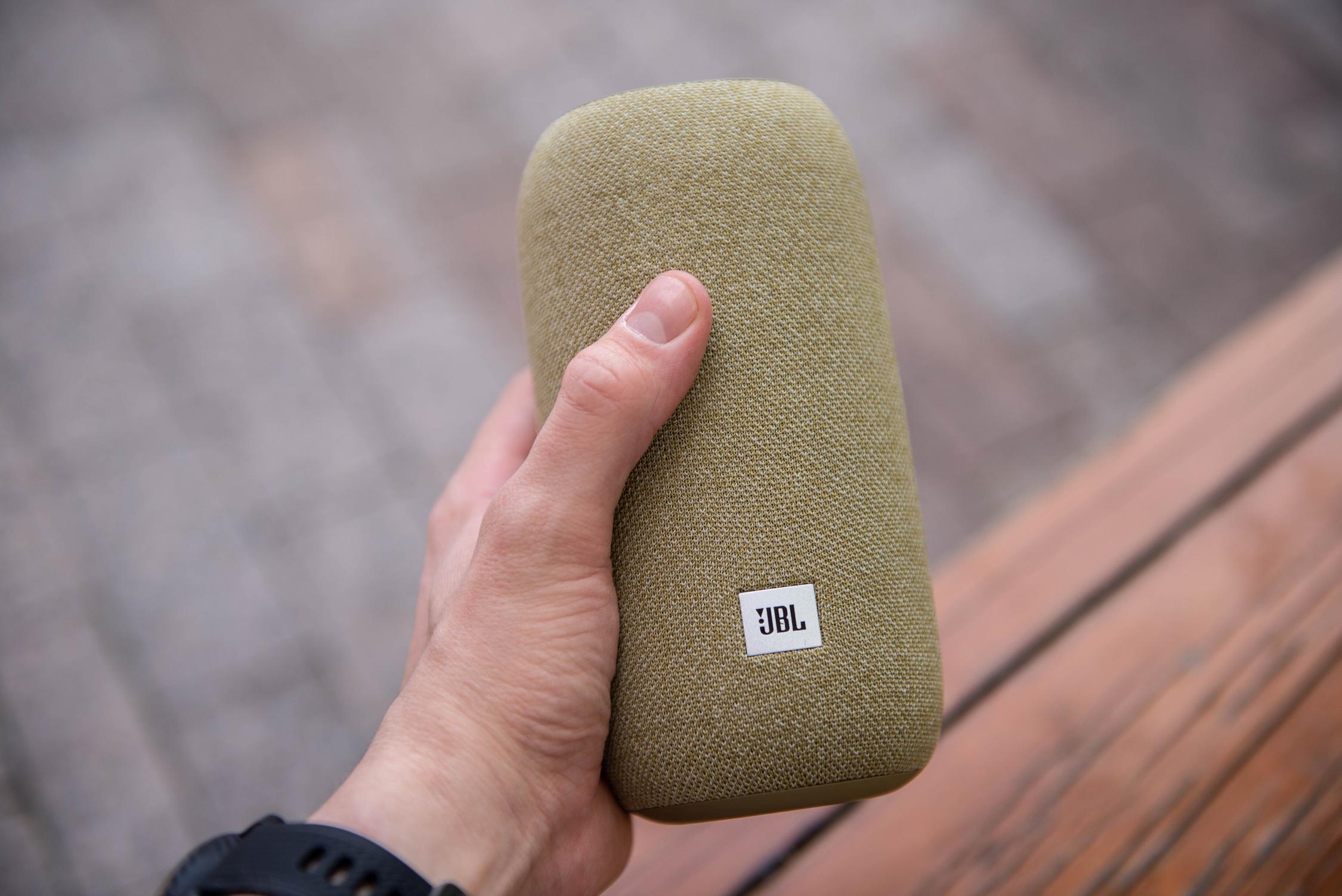 Колонка имеет округлую форму, высоту порядка 135 миллиметров и вес около 700 граммов . Она практически ничем не отличается от JBL Link Portable — только нет встроенного аккумулятора .