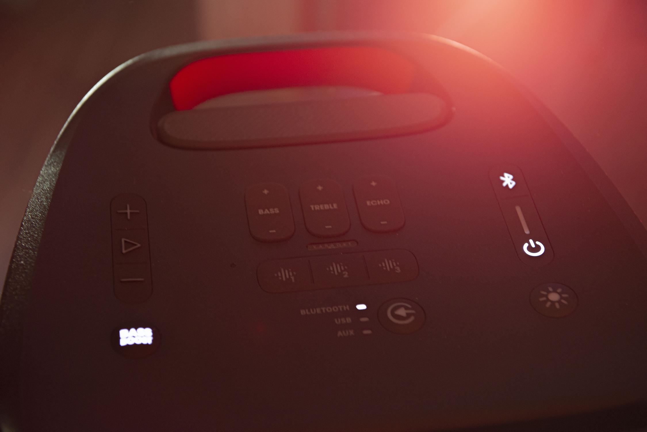 JBL PartyBox 710 — колонка для вечеринки . Мощность — 800 Вт . Есть светомузыка . Перемещать устройство можно при помощи встроенных колёсиков и ручки . Защита от брызг — IPX4 .