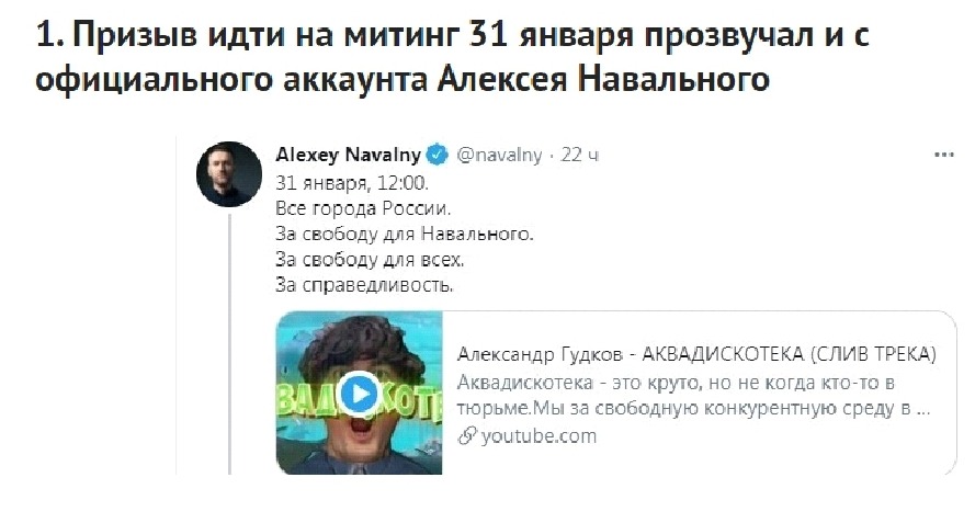К акции 31 января власти как в Москве, Санкт- Петербурге, других регионах, подходят вооружившись именно с багажом в виде опыта прошлого меропрития. Московская полиция заявила, что в связи с призывами к участию в несанкционированных акциях в центре Москвы введут ограничения для пешеходов.