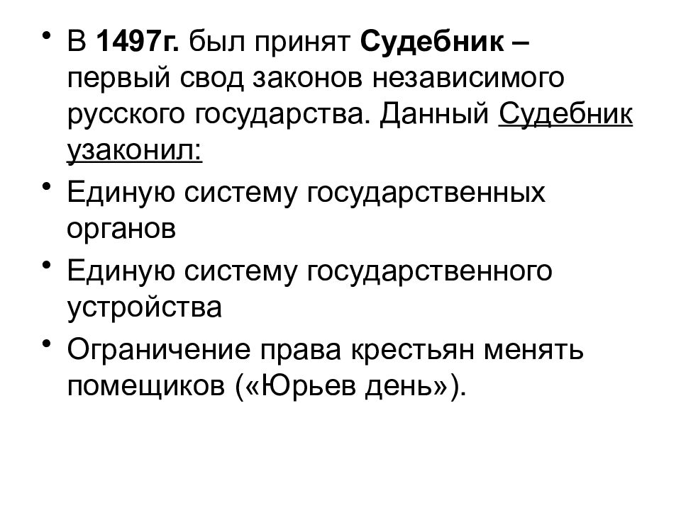 Последствия принятия судебника 1497 78 фотографий