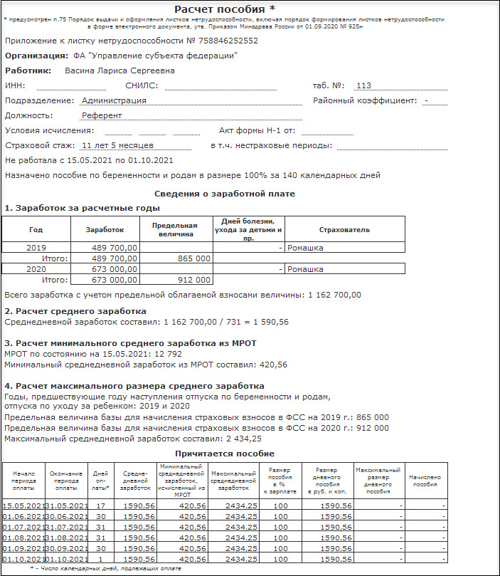 Пособие по беременности и родам рассчитывается исходя из среднего заработка и не зависит от стажа сотрудницы (в отличие от пособия по временной нетрудоспособности) .