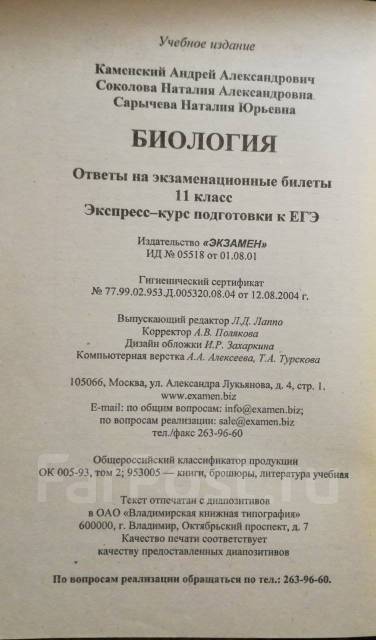 Скачать бесплатно pdf, djvu и купить бумажную и электронную книгу по лучшей цене со скидкой: Биология - Примерные билеты для 11 классов - 2005 . По биологии предлагается два блока экзаменационных билетов : для . . .