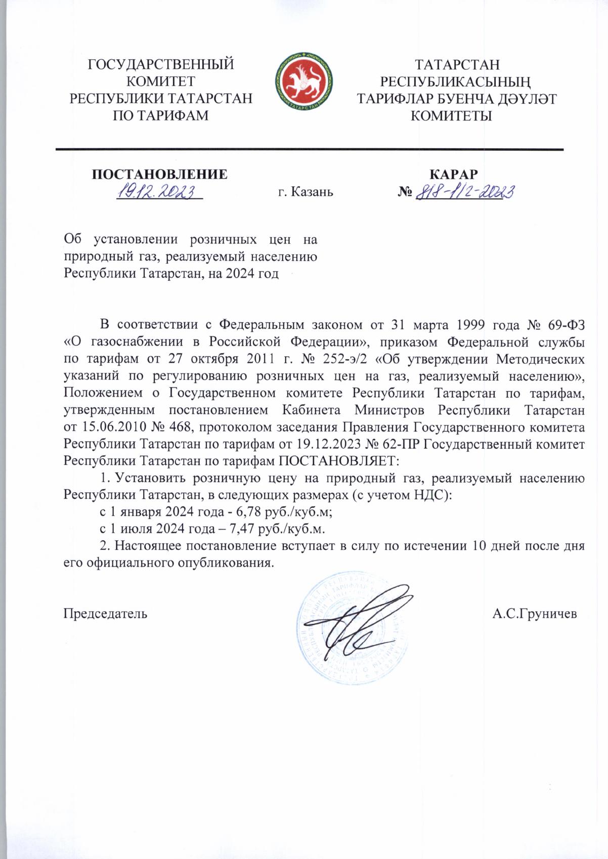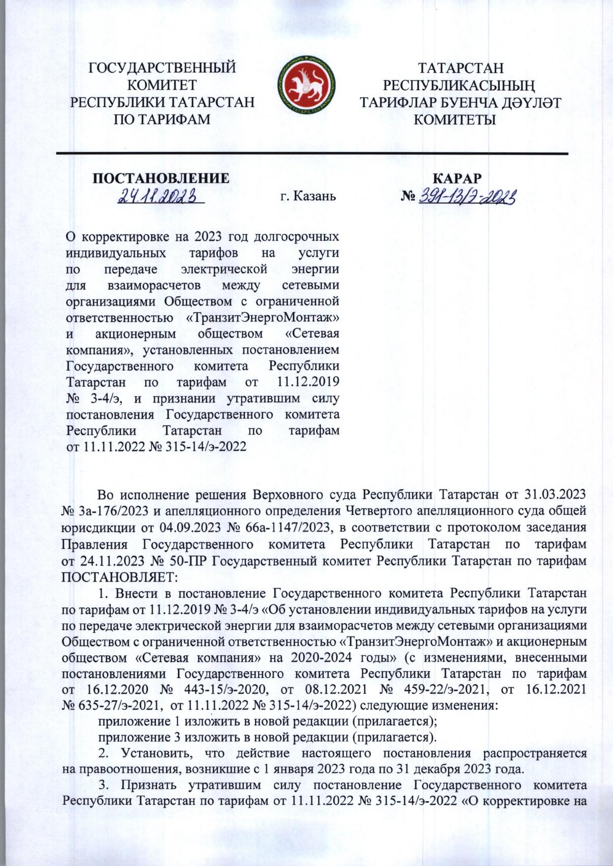 Постановление госкомитета по тарифам