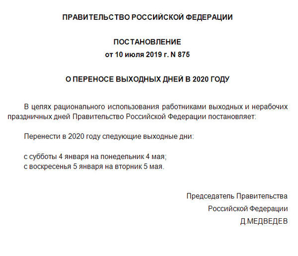 Постановление правительства нерабочие дни