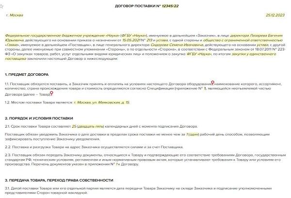 Поставщик не предоставляет договор