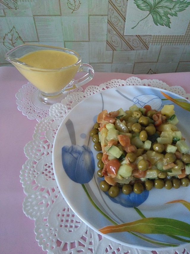 Постный майонез на зеленом горошке