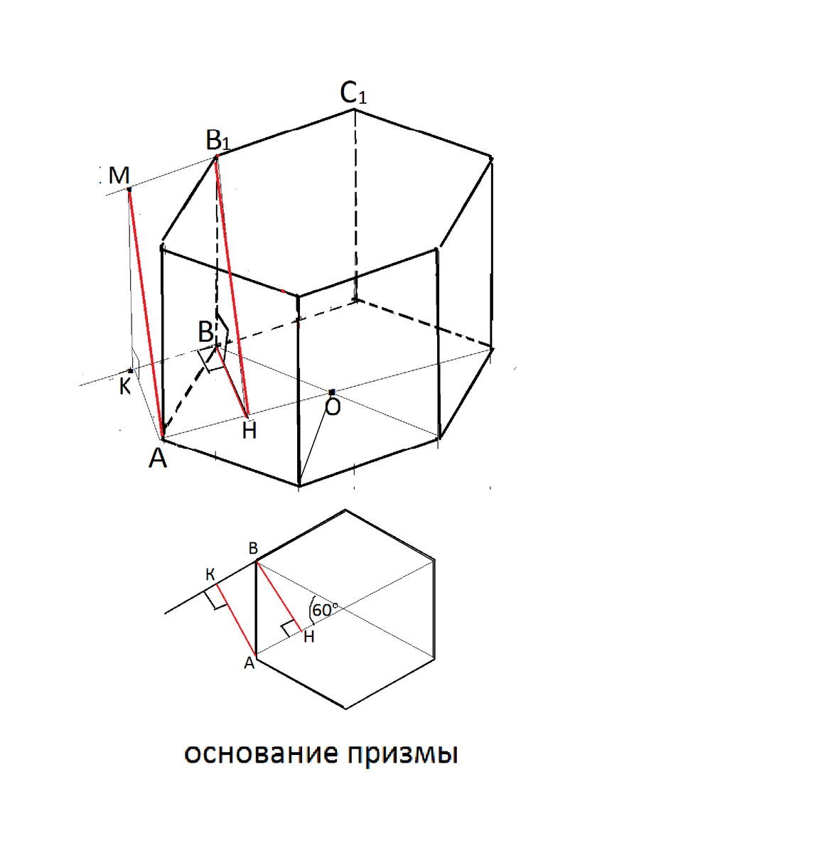 Постройте шестиугольную призму abcdefa1b1c1d1e1f1
