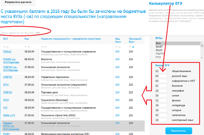 Поступить по егэ калькулятор