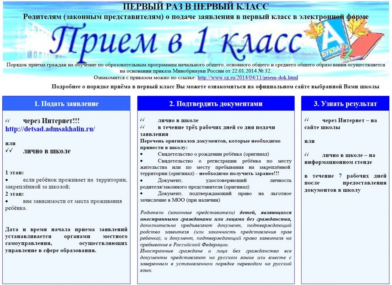 Поступление в первый класс 2025