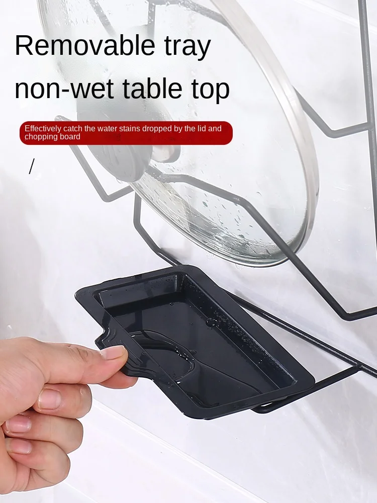 ltMdsnEWFFHere you can buy Pot Cover Rack Punch-Free Household Kitchen Pot Cover Chopping Board Storage Holder with Water Collection Tray Wall Hanging with free delivery to your post office.