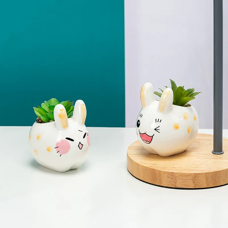 "Pot Creative Cartoon Animal Ceramic Succulent Flowerpot Simple Fashion Gardening Cute Rabbit Combination Mini Potted Flower Pot" * Buy Now Just For 1$
