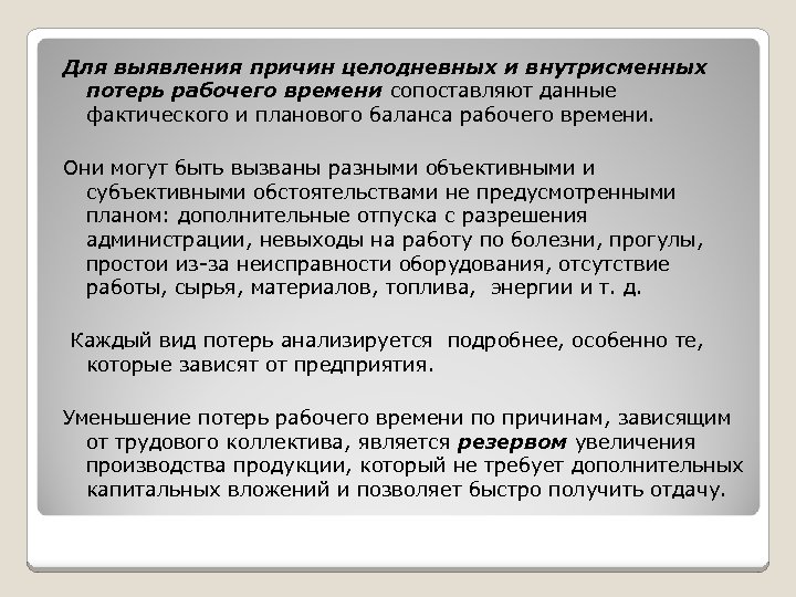 Потеря во времени причины