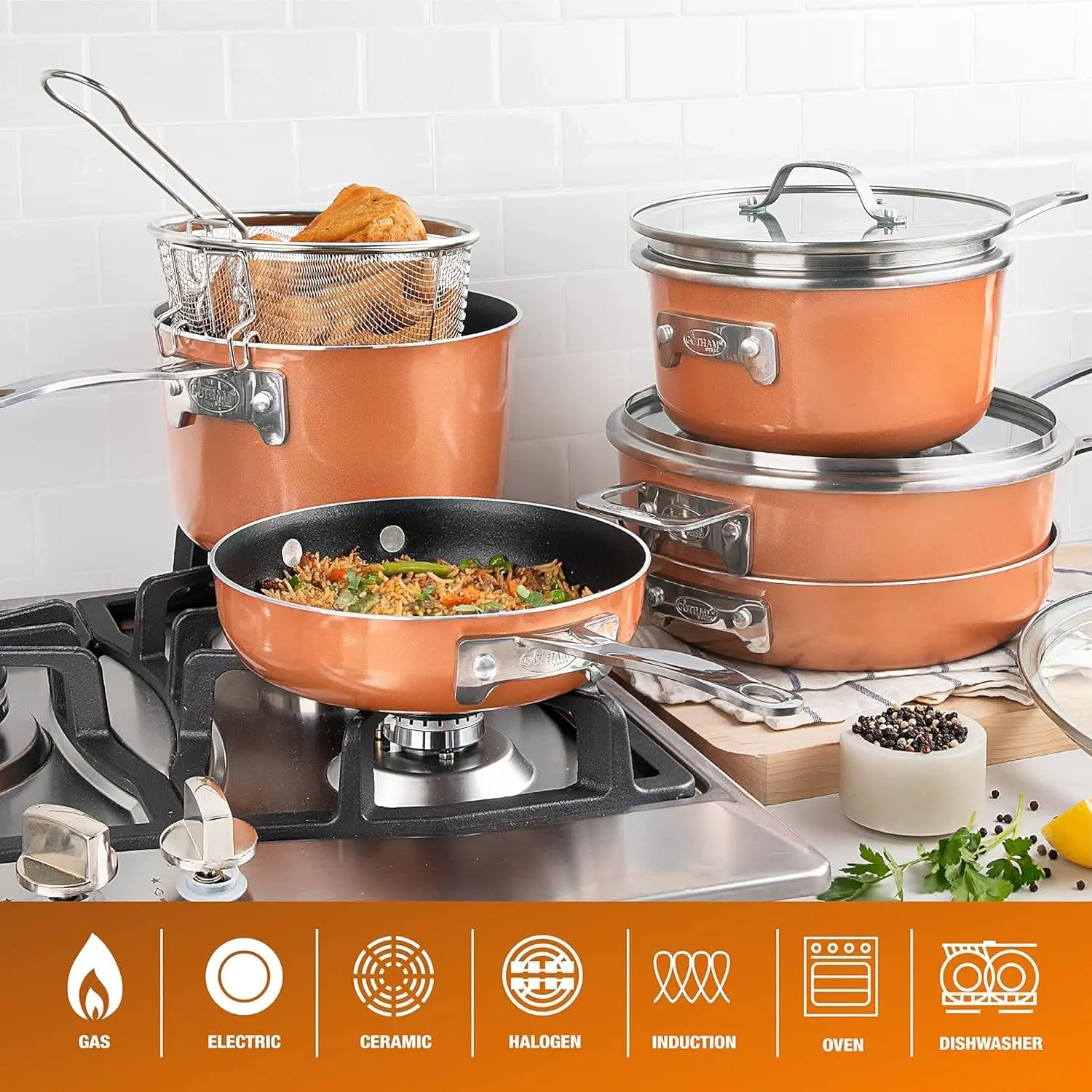 Pots & Pans Set \u2013 Stackable 10 Piece Cookware Set Saves 30% Space, Ultra Nonstick Cast Texture Coating, Includes Fry Pa Alu - Купить с бесплатной доставкой