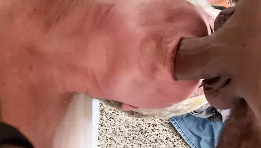 Potty mouth granny gets cum