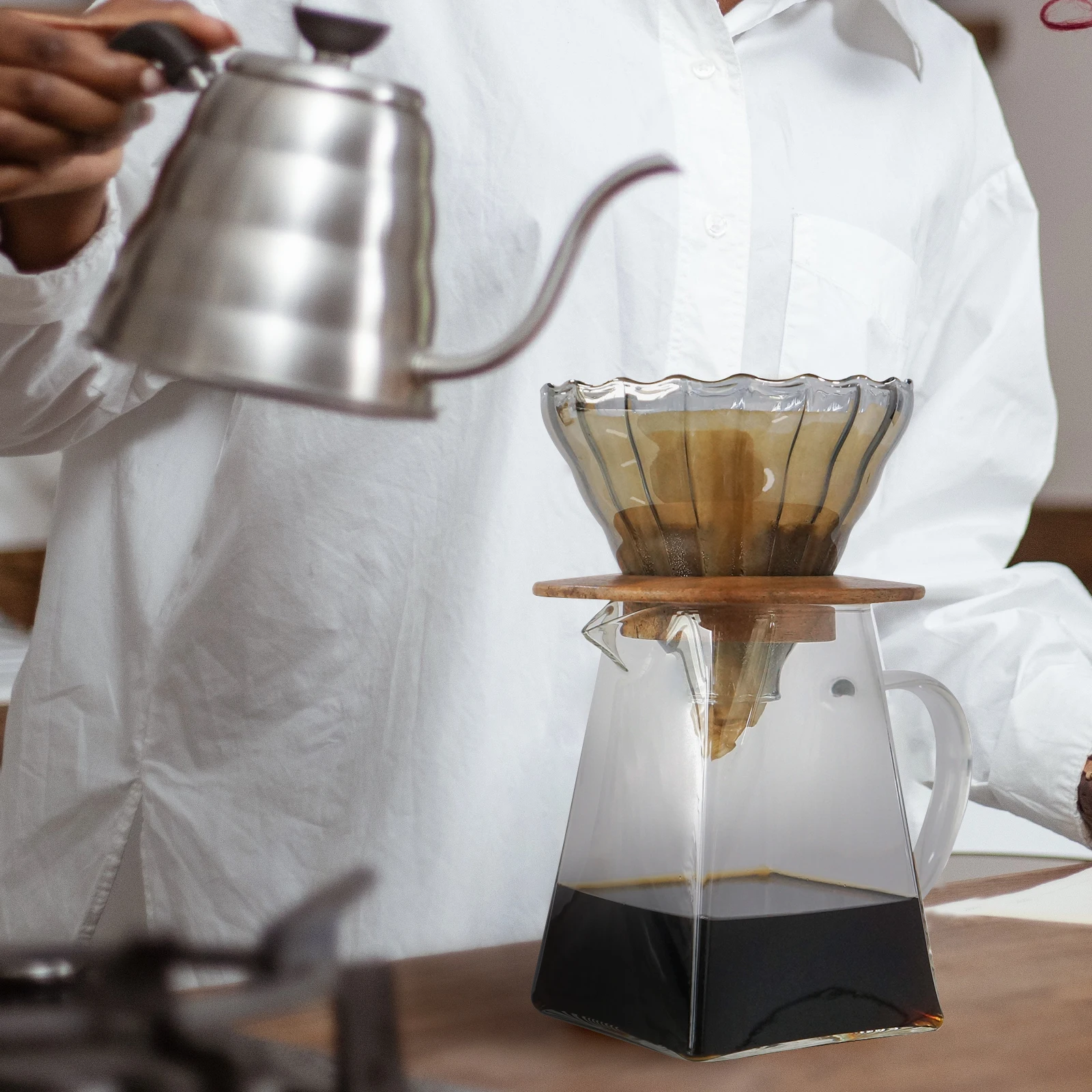 «Pour Over Coffee Maker Set Premium Glass V60 Dripper 750ml Share Pot 2-4 Cup Home Office Coffee Maker Wood base Filter Paper» по лучшей цене на рынке! Всего за 42$ (3990рублей)